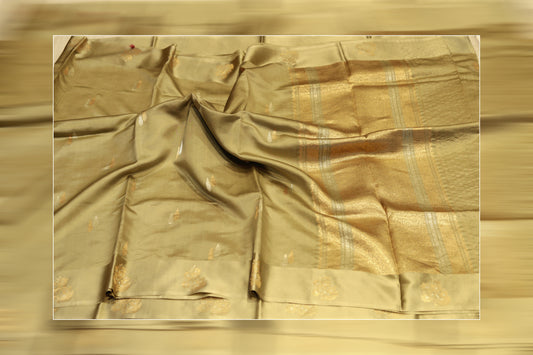 Pure handloom kadhiyal raw mango beige saree