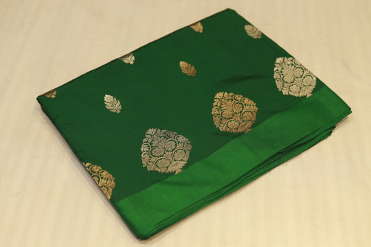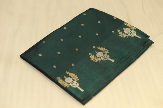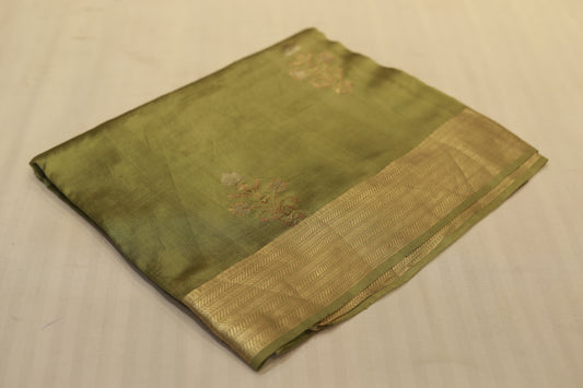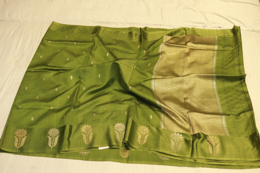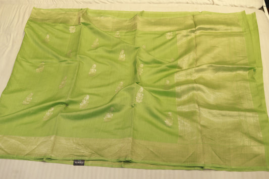 Pure handloom katan cutwork raw mango green saree