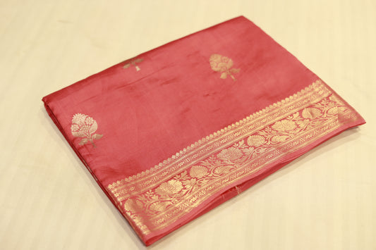 Pure handloom katan cutwork raw mango pink saree