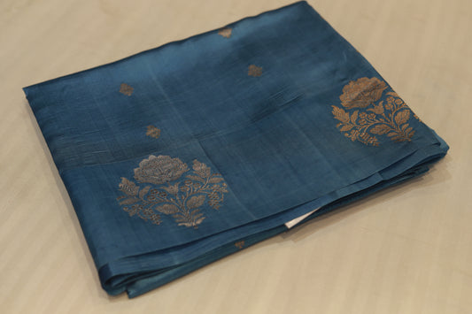 Pure handloom katan cutwork raw mango blue saree