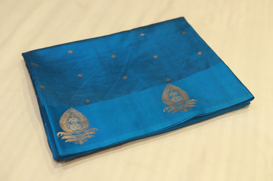 Pure handloom kadhiyal raw mango blue saree