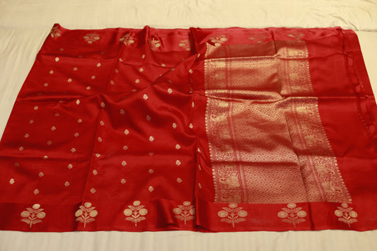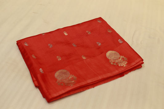 Pure handloom katan cutwork raw mango red saree