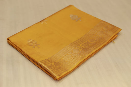 Pure handloom kadhiyal raw mango yellow saree