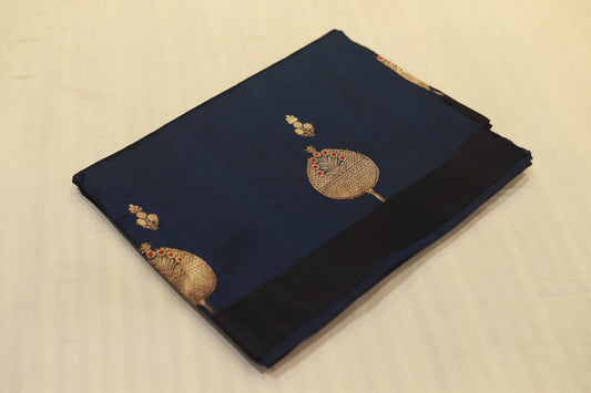 Pure handloom kadhiyal raw mango dark blue saree