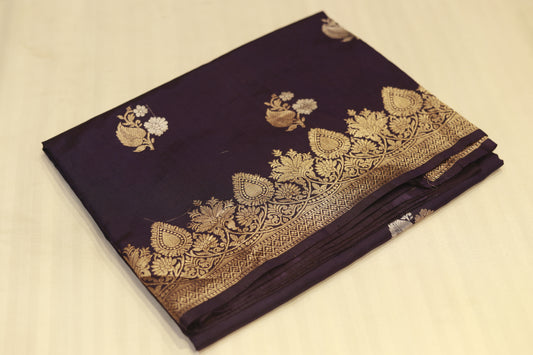 Pure handloom katan cutwork raw mango purple saree