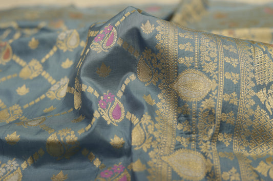 Pure Handloom katan cutwork ektara jungla Gray & blue saree