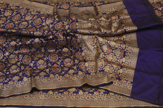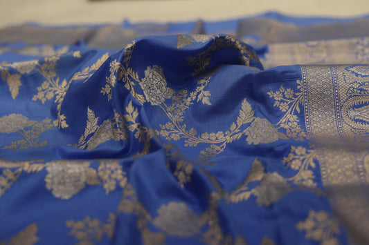 Pure handloom katan cutwork ektara jungla Royal Blue & Gold Zari saree