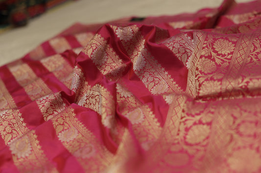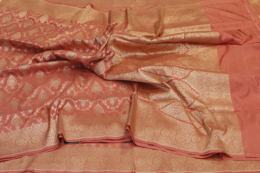 Pure Handloom Katan Cutwork Ektara Jungla Pink Saree