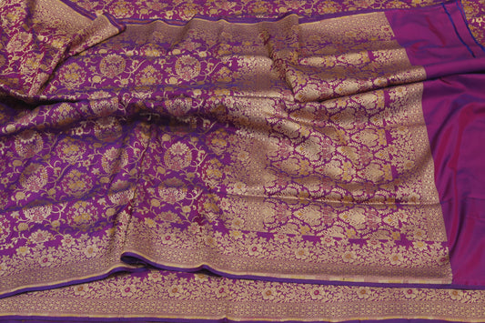 Pure Handloom Katan Jungla Cutwork Purple Saree 18