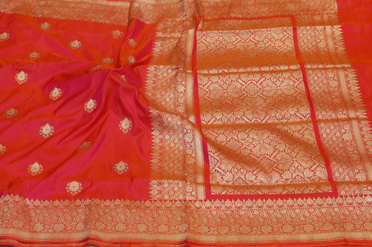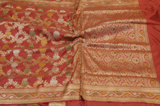 Pure Handloom Katan Jungla Cutwork Orange Saree 19