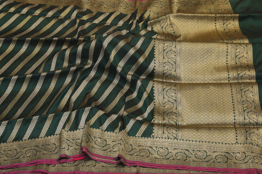 Pure Handloom Katan Jungla Cutwork Green Saree 10