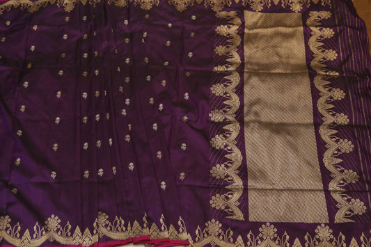 Pure Handloom Katan Jungla Cutwork Purple Saree 11