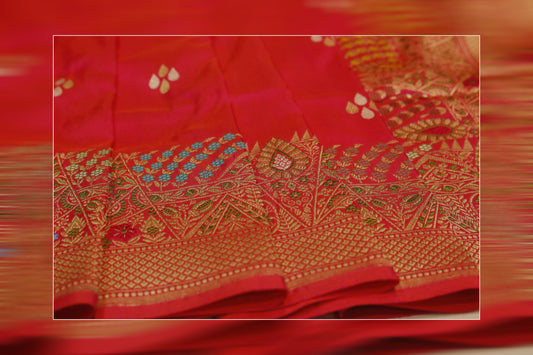 Pure Handloom Katan Jungla Cutwork Red Saree 1