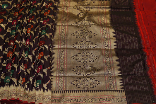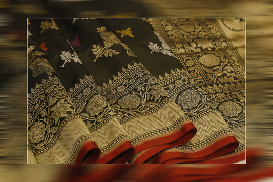 Pure Handloom Katan Jungla Cutwork black Saree 17