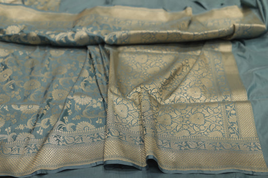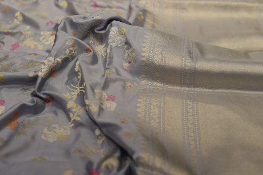 pure handloom katan premium ektara jungala tilfi weaves gray & golden work saree