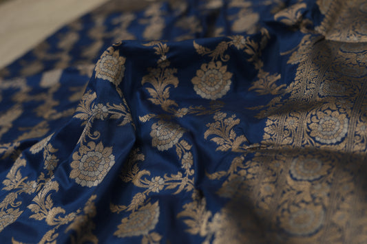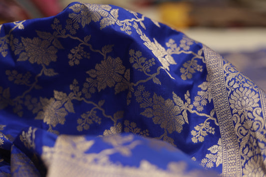pure handloom katan cutwork ektara jungla royal blue & golden saree