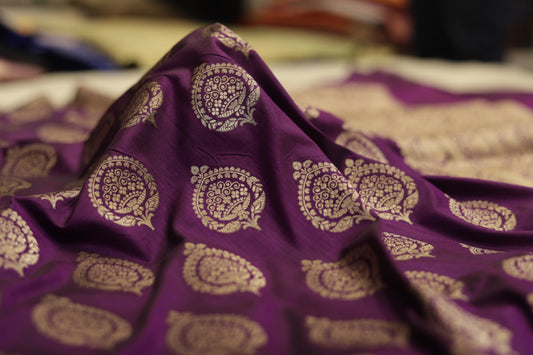 pure handloom katan premium ektara jungala tilfi weaves royal purple & golden work saree