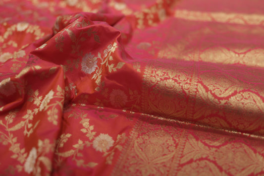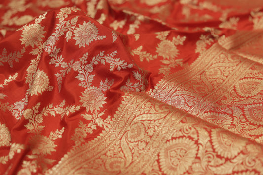 Pure handloom katan cutwork ektara jungla Red & golden saree