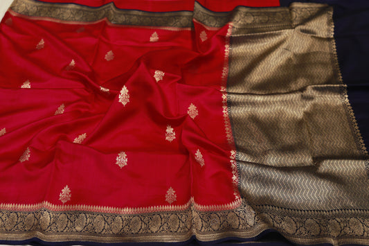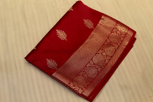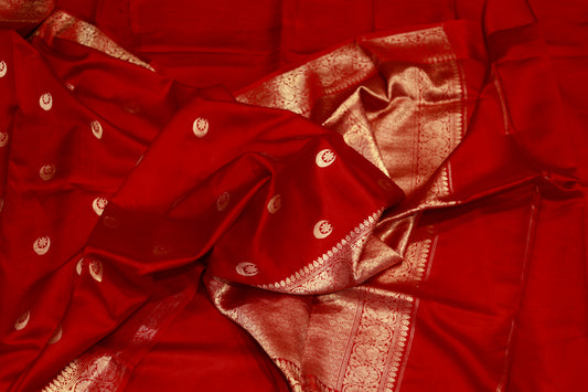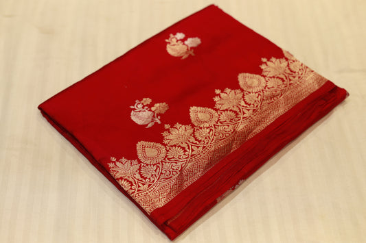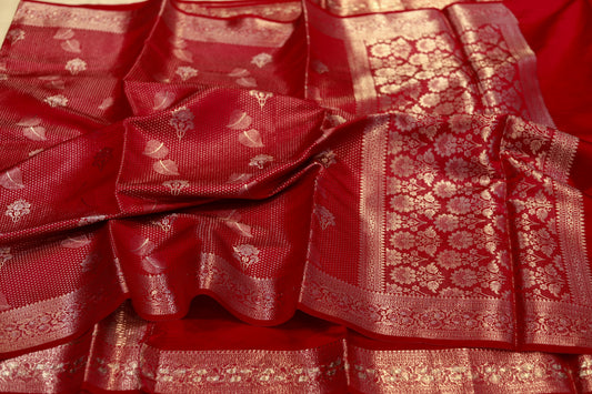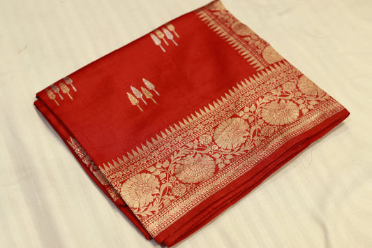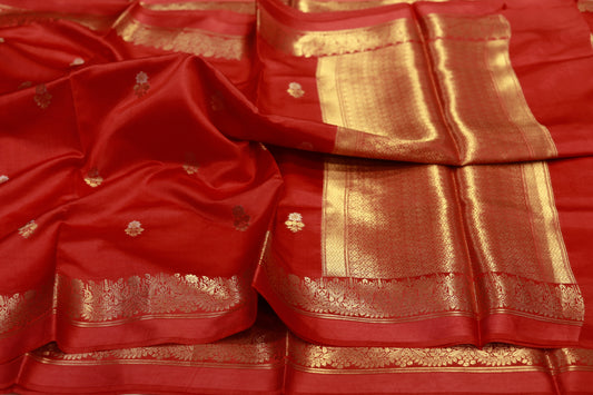 Pure Handloom Kadhiyal katan brocade raw mango red saree