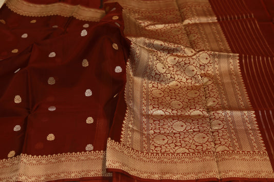 Pure Handloom Kadhiyal Katan Raw Mango red mango