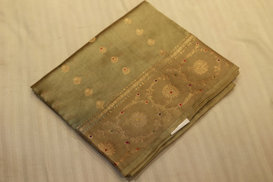 Pure Handloom Ektara Kora Organza with tissue green saree