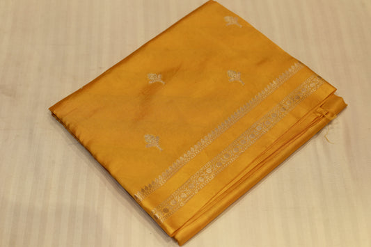 Pure Handloom Kadhiyal Katan Raw Mango yellow saree