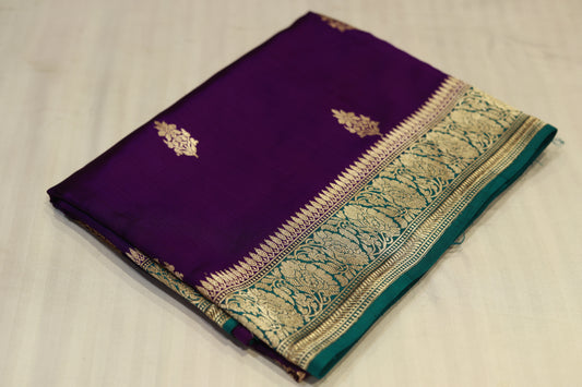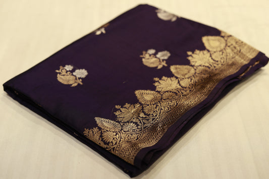 Pure Handloom Kadhiyal Katan Raw Mango purple saree