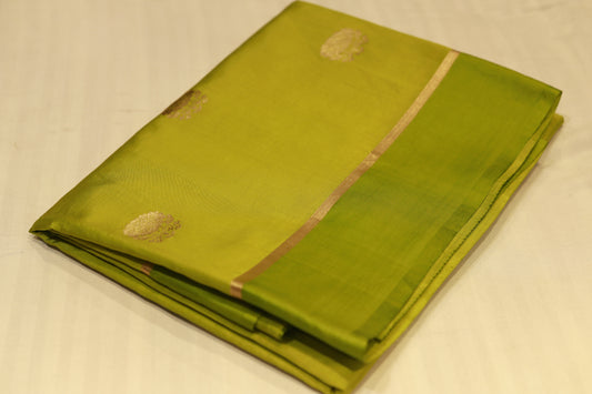 Pure Handloom Kadhiyal Katan Raw Mango green saree