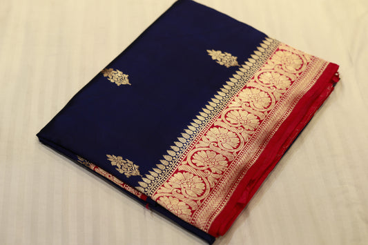 Pure Handloom Kadhiyal Katan Raw Mango blue Saree